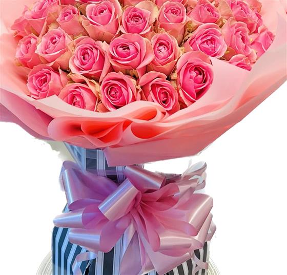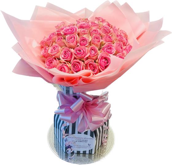 50 luxury top grade pink roses gift wrapped and presented in our popular bouquet boxes, Delivered in water.