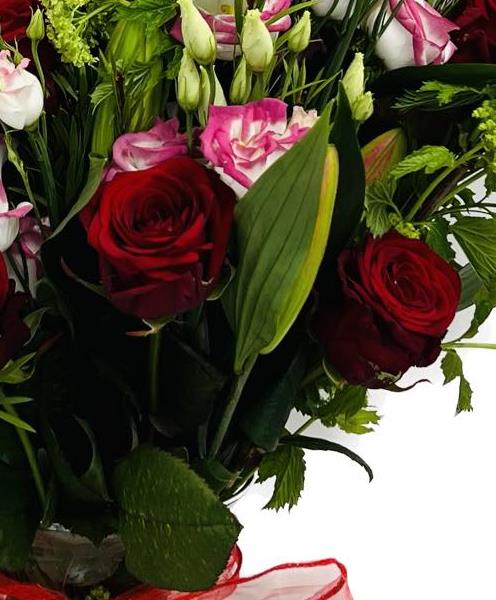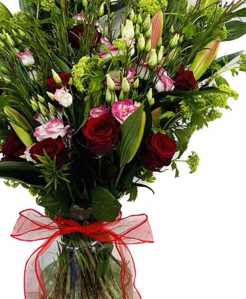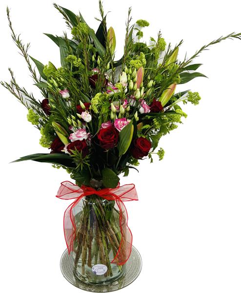 Luxury Red Rose Vase Display with other colour coordinating seasonal flowers