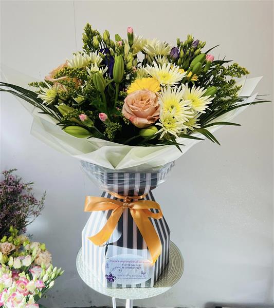 Please note that due to the seasonal availability of flowers it may be necessary to vary individual stems from those shown. Our skilled florists may substitute flowers for one similar in style, quality and value. Where our designs include a sundry item like a vase or basket it may not always be possible to include the exact item as displayed. If such an occasion arises we will make every effort to replace the item with a suitable alternative.