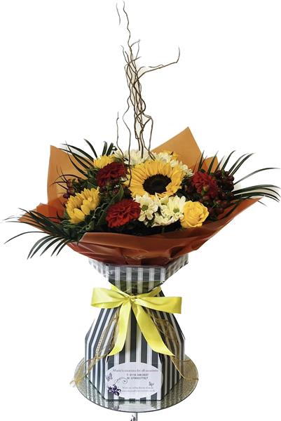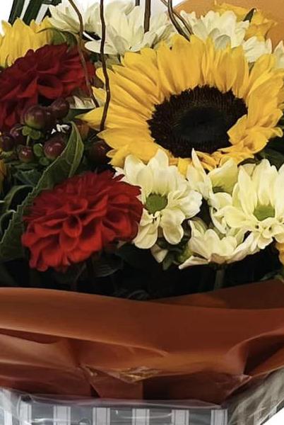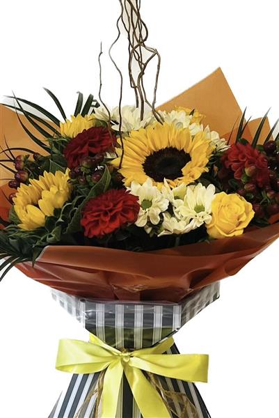 Spring into Autumn with this beautiful bouquet of reds yellows & browns