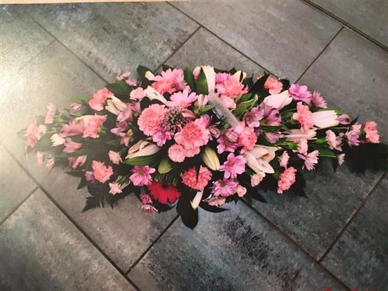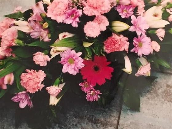 pink spray with Lillys and other all year round flowers including chrysanthemums gerbras and carnations